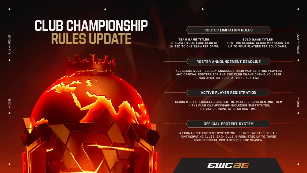 EWC 2026 : 30 M$ et des règles plus strictes pour le Club Championship
