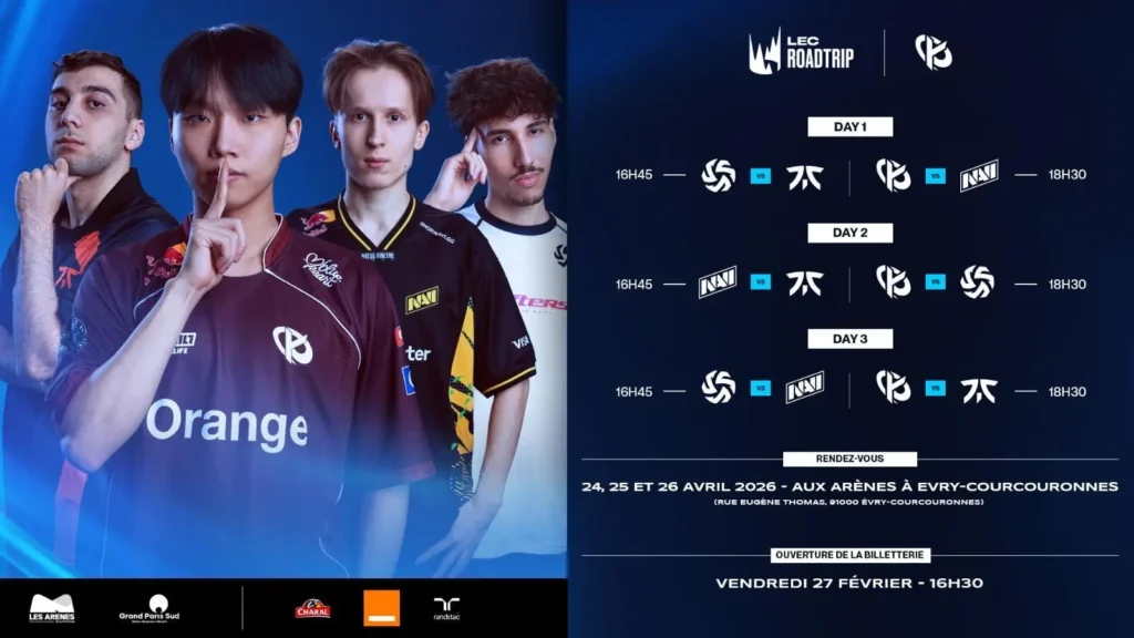 En installant ses matchs au cœur des territoires, le LEC entend renforcer le lien entre les équipes franchisées et leurs supporters. Pour la Karmine Corp, cette étape à domicile représente bien plus qu’un simple week-end de saison régulière : c’est l’occasion de galvaniser sa fanbase et de transformer Évry-Courcouronnes en véritable chaudron bleu, dans la course aux playoffs du Spring Split 2026.